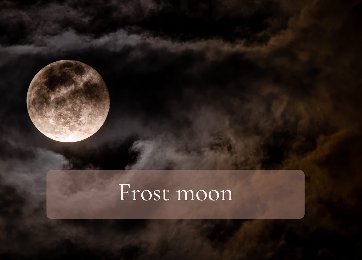 The seasonal name of this full moon is the Frost Moon, referring to the cold and the winter at this time of year. The Frost Moon symbolizes stillness, slowing down, and protection.